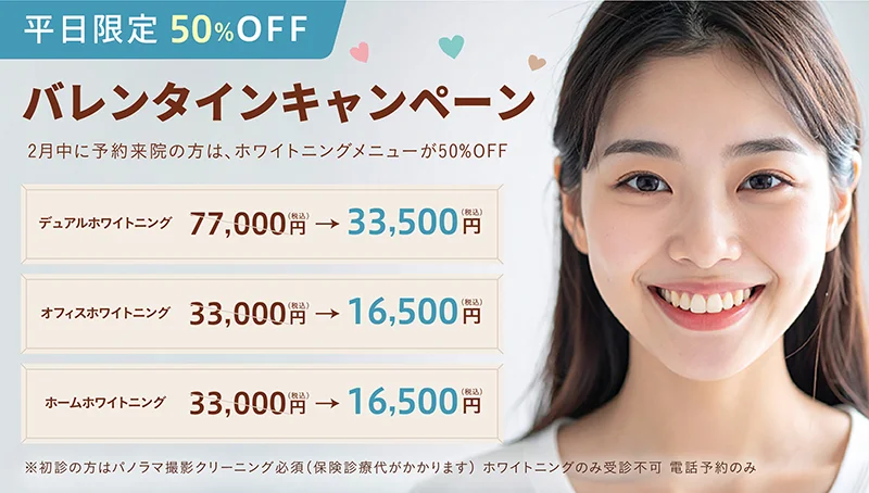 このように異なる特性を持つデュアルホワイトニングとPMTCを組み合わせることで、「すぐに白くなる喜び」と「白さが長く続く安心感」の両方を実現できるのが、当院の特別メニューの最大の魅力です。美しい笑顔を手に入れたい方はもちろん、その美しさを長く保ちたい方にもおすすめいたします。